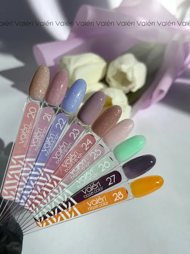 French Base Valeri jsou vysoce kvalitní elastické kamuflážní báze střední hustoty, které kombinují vynikající samonivelační vlastnosti a komfort při práci. Díky své jedinečné receptuře perfektně zakrývají nerovnosti nehtové ploténky a vytvářejí bezchybný, rovnoměrný odstín, který nehtům dodává upravený a přirozený vzhled.