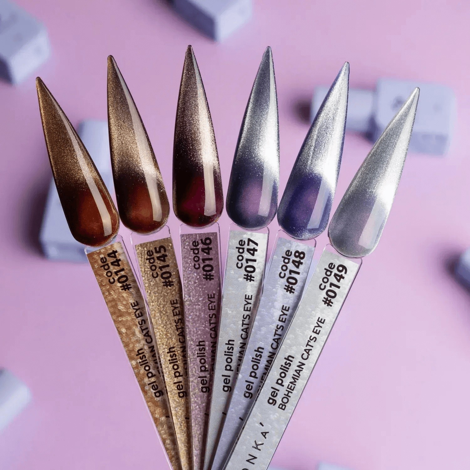 Kolekce „Bohemian Cat´s Eye“ je série jedinečných odstínů naplněných elegancí a inspirovaných efektem kočičích očí. Tyto výjimečné magnetické hybridní gel-laky vám umožňují vytvářet ohromující designy s rafinovaným krystalickým leskem a hloubkou, které se mění v závislosti na světle a úhlu pohledu a připomínají krásu drahokamů.