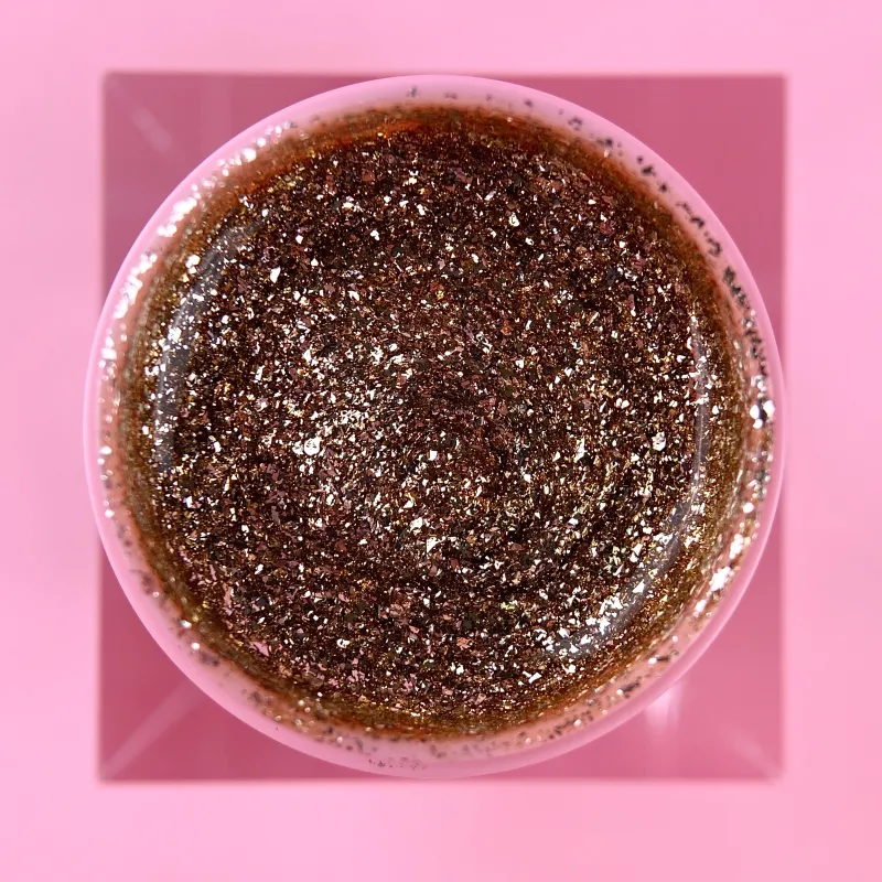 PLATINUM GEL — to jsou třpytky nasycené vícebarevným glitrem. Mají středně hustou konzistenci, nestékají a nezatékají pod kůžičku.