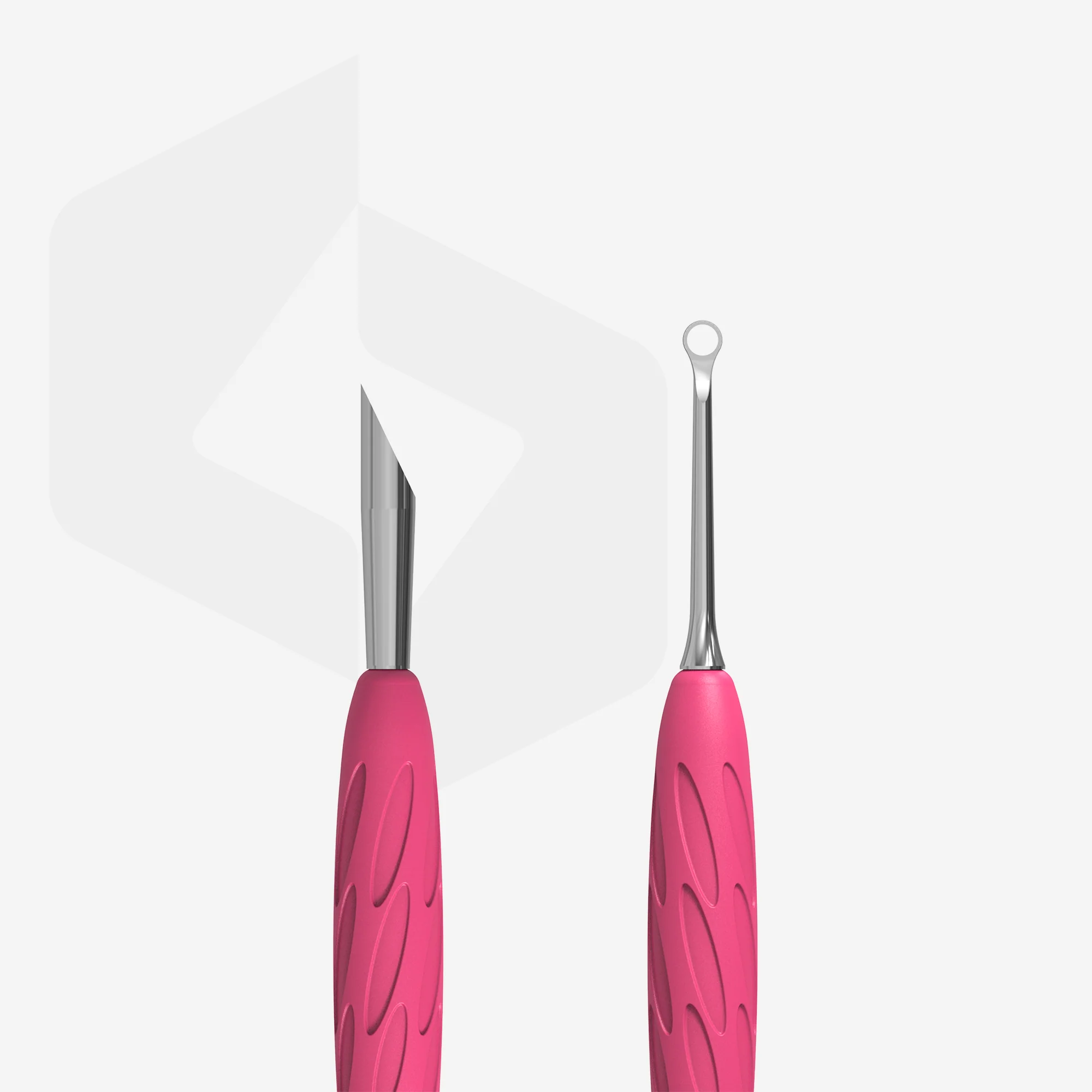- Pracovní část „šikmý zatlačovač“ slouží k nadzvednutí a zatlačení hrubé a silně přilnavé kůžičky, k očištění volného okraje nehtu, k odstranění stékajícího gel-laku.